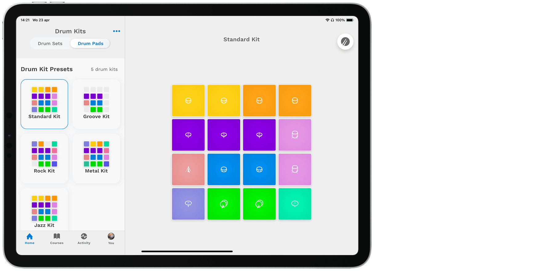 Open the Home tab, tap the edit button in the top right corner, and toggle on “Drum Pads.”