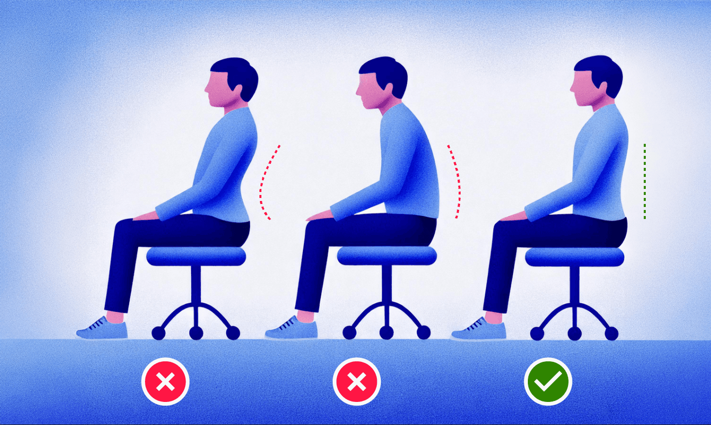 Curvar-se pode parecer confortável por um tempo, mas causa dor nas costas e fadiga com o passar das horas. Mantenha a coluna alinhada, com leve ativação do abdômen para sustentar o tronco sem rigidez. Um banco com apoio lombar também pode ajudar a manter uma boa postura.